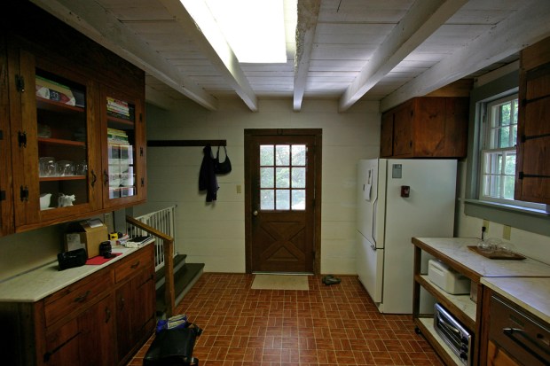 Despite its fascinating past, the kitchen’s present condition leaves a bit to be desired. It’s also down a set of steps, so it’s not entirely convenient for 2 a.m. kitchen raids. To remedy this situation (hardcore preservationists, cover your ears), we intend to build a new kitchen in the current dining room, on the main level of the house. Since the kitchen is the room closest to the driveway and serves as the main daily entry and exit point for us, we think it has a fine future as a mudroom.