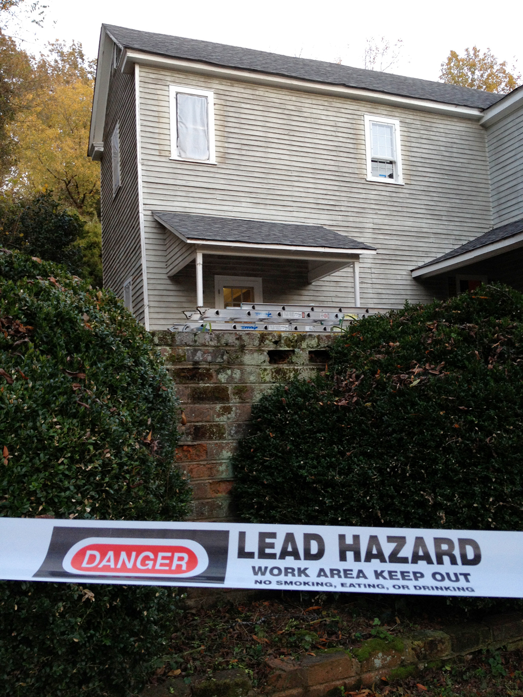 Our painters started yesterday and the tape is part of their compliance with the lead paint renovation laws enforced by the gub’mint. If they don’t comply, they leave themselves vulnerable to hefty fines if an EPA agent were to visit the job site.