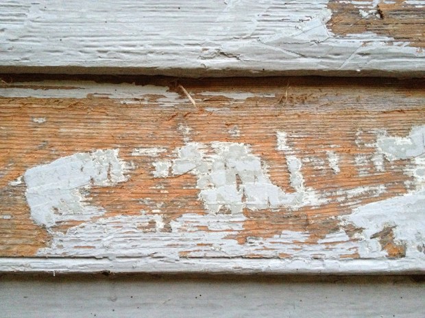 The sequence of events for the job will be: scrape, sand, wash, scrape again, apply primer x 2, apply top coat x 2. Right now, the painters are on their first round of scraping, which is done after wetting the wood. The company we’ve hired owns a fleet of electric sanders attached to HEPA vacuums. This allows them to safely sand the siding without releasing clouds of lead dust. It also means that the painters can really lean into their scrapers; any errant gouges or fraying of the wood will be worked out once they get to sanding. There’s some beautiful, dense, old-growth wood underneath that peeling paint.